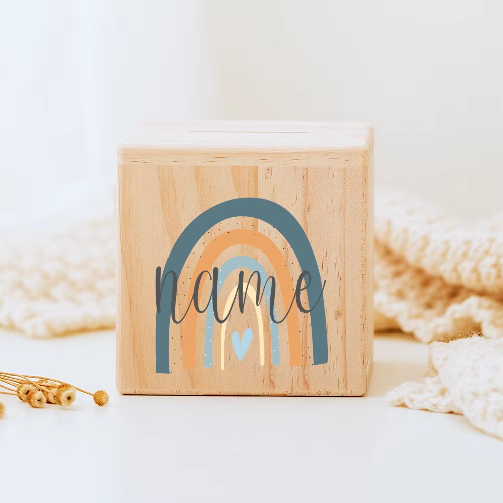 Jede Kindheit ist ein Abenteuer und jedes Abenteuer verdient ein besonderes Erinnerungsstück. Unsere personalisierte Holzspardose ist mehr als nur ein praktischer Behälter für das Taschengeld Ihres Kindes – sie ist ein treuer Begleiter in der aufregenden Welt des Sparens und der Entdeckungen. Mit einem farbenfrohen Regenbogen wird diese Spardose zu einem einzigartigen Schatz, der Ihr Kind nicht nur beim Sparen motiviert, sondern auch als Erinnerung an schöne Momente dienen wird. Die Möglichkeit, die Spardose mit dem Namen des Kindes zu personalisieren, macht sie zu einem ganz besonderen und persönlichen Geschenk.