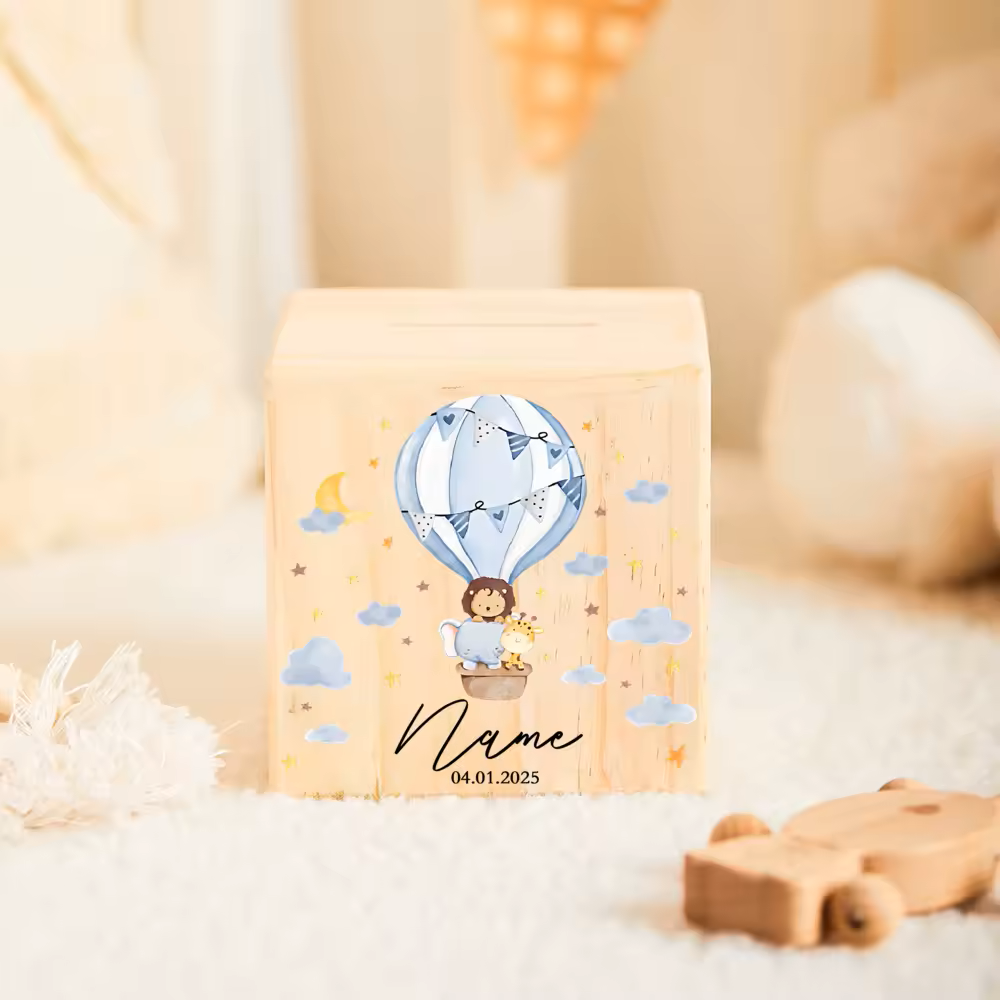 Jede Kindheit ist ein Abenteuer und jedes Abenteuer verdient ein besonderes Erinnerungsstück. Unsere personalisierte Holzspardose ist mehr als nur ein praktischer Behälter für das Taschengeld Ihres Kindes – sie ist ein treuer Begleiter in der aufregenden Welt des Sparens und der Entdeckungen. Mit liebevollen Tiermotiven wird diese Spardose zu einem einzigartigen Schatz, der Ihr Kind nicht nur beim Sparen motiviert, sondern auch als Erinnerung an schöne Momente dienen wird. Die Möglichkeit, die Spardose mit dem Namen des Kindes zu personalisieren, macht sie zu einem ganz besonderen und persönlichen Geschenk.
