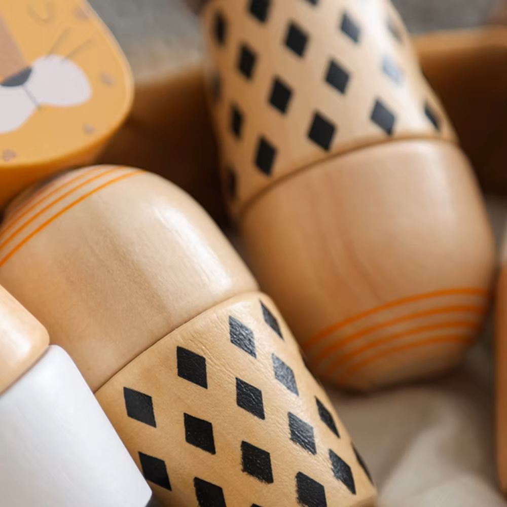 Das Design ist liebevoll und kindgerecht, mit klaren Tiermotiven, die die Fantasie der Kinder anregen. Die Verwendung von umweltfreundlichem Holz stellt sicher, dass das Spielzeug für dein Kind sicher ist und gleichzeitig zur Nachhaltigkeit beiträgt. Die robusten und gut verarbeiteten Teile sind so gestaltet, dass sie sowohl langlebig als auch einfach zu handhaben sind.